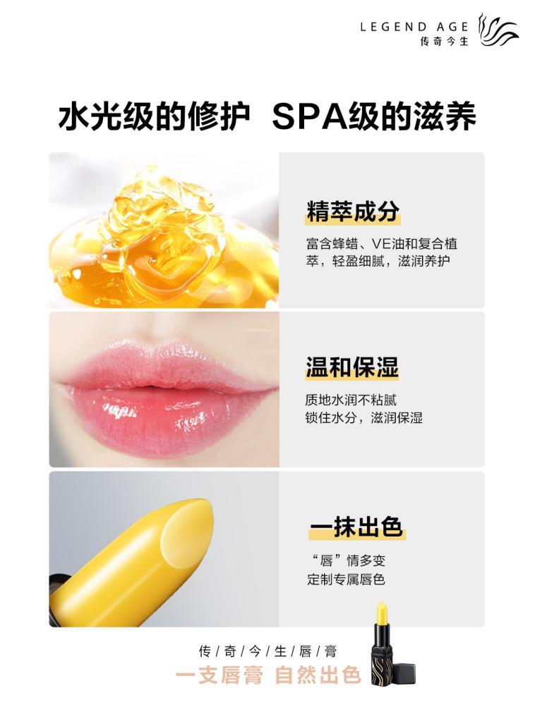 传奇今生唇膏具有修护唇色、滋养干燥唇部、柔润唇肌、淡化唇纹、自动变化色泽多种产品功效。在唇膏普遍只能滋润唇部的2008年,这款极具创新性的多功效产品一经问世,就受到了业界的普遍关注。消费者在体验过产品后,更是自发性地让身边的亲朋好友种草这款唇膏产品。人们惊喜地发现,唇膏原来不仅能滋润唇部肌肤,还能用作唇膜,用来晚上睡觉前做唇部护理,甚至还可以用作口红,让唇部更显自然色泽,因为传奇今生唇膏能根据每个人唇部环境的不同,变化不同的色泽。传奇今生唇膏的诞生,重新定义了美唇。