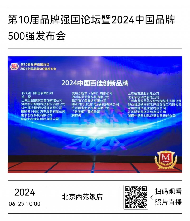 湖南步升取暖科股份有限公司在“第10届品牌强国论坛暨中国品牌500强发布会”上,贵公司荣获2024中国百佳创新品牌