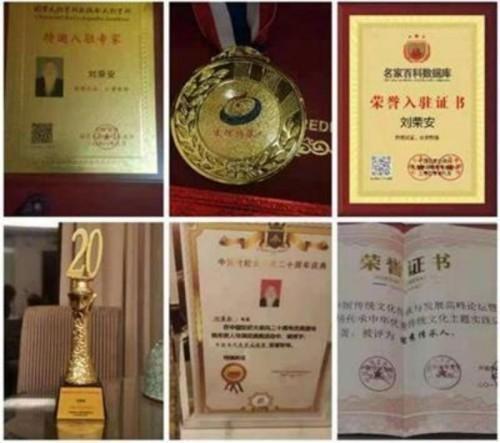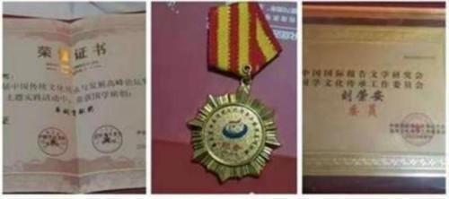 刘荣安在中国第六届传统文化传承与发展会上获国学应用突出贡献奖。由原江西省副省长,中央政协委员,孙希岳颁发证书。(左4为刘荣安)